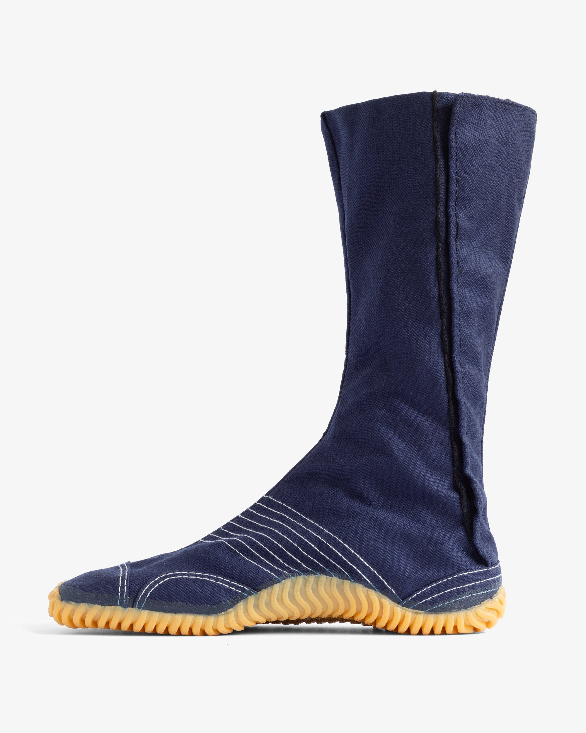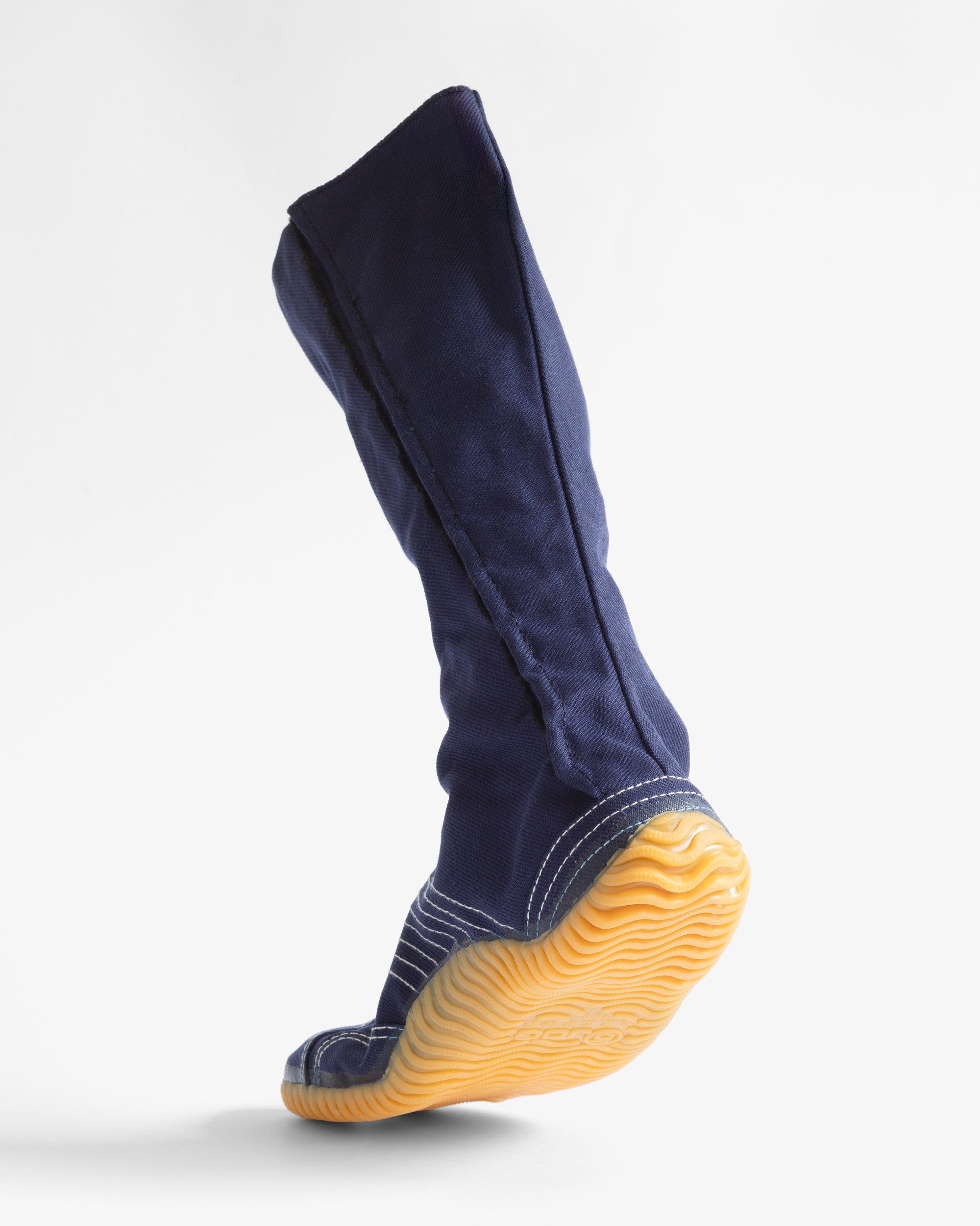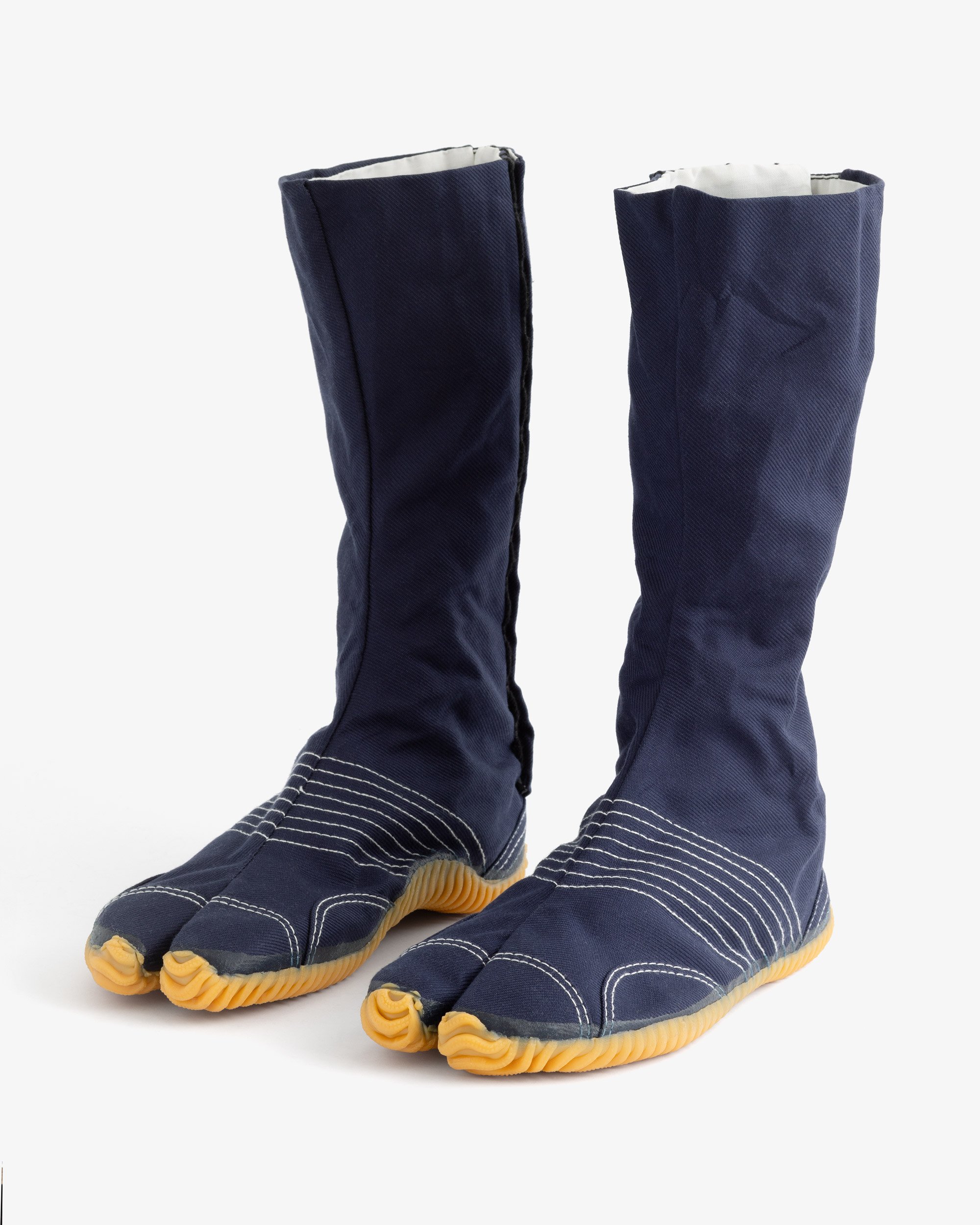 Historically, split-toe shoes were made of leather thin enough to be worn like socks. Over time, changing fashion and new manufacturing technologies evolved this design into modern versions of Jika-Tabi. One such version is a cotton boot with a non-slip rubber sole, which is still widely used in Japan by gardeners and construction workers as standard work footwear.