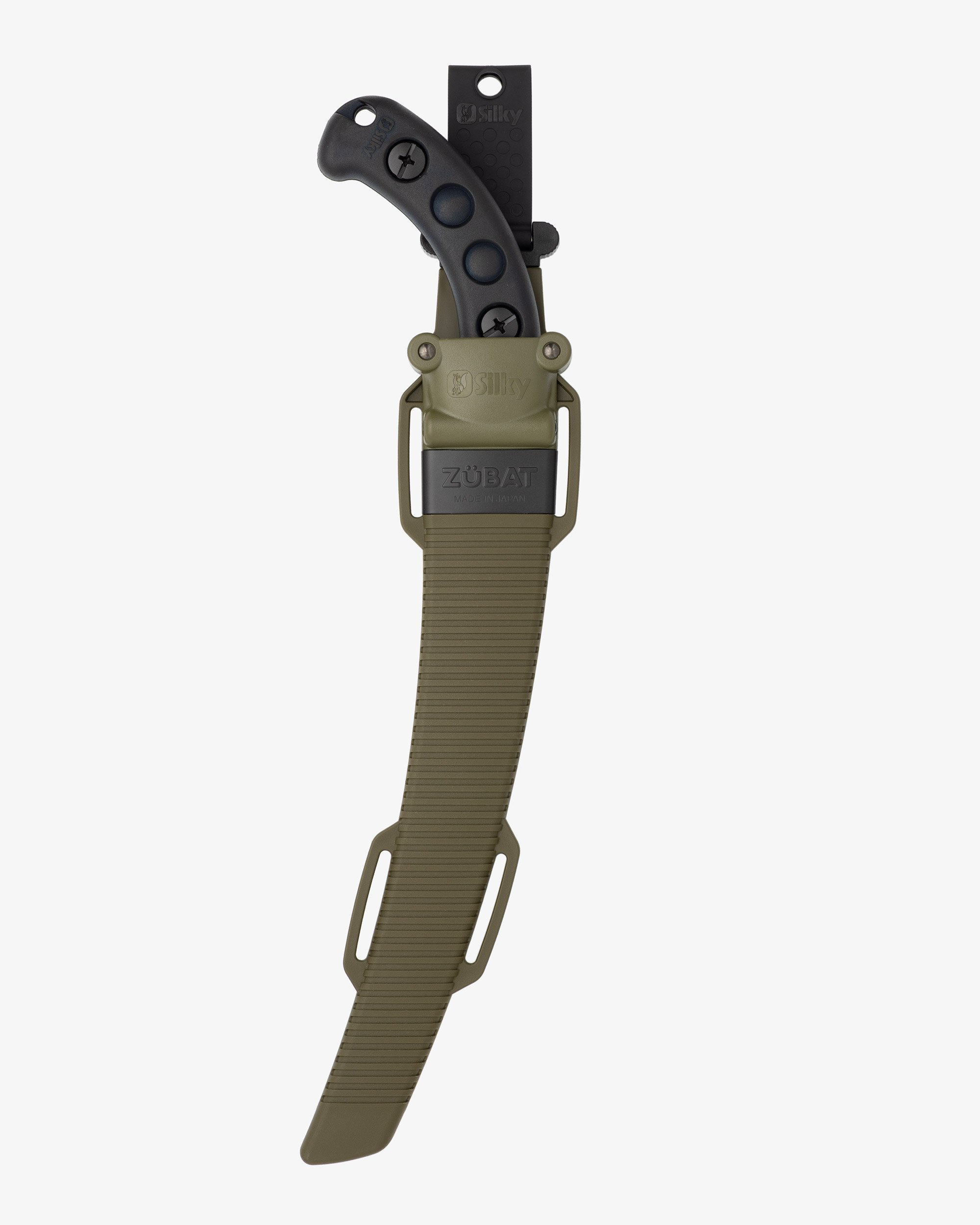- OD green scabbard with a black metal plate has a lower profile look when compared to the previous ZUBAT sheath